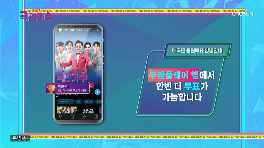 내일은 국민가수 투표하기는 쿠팡에 가입해야 하고 하루에 한번 투표 할수 있습니다. 단 쿠팡 와우 회원은 쿠팡 플레이를 통해 1번의 추가 투표 기회가 주어집니다.